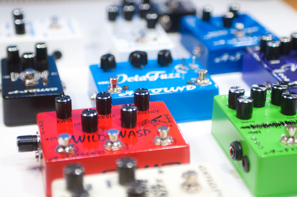 We develop effect pedals that address a wide array of applications and styles, utilizing high quality electronic parts and innovative ideas, we try to reduce the cost as much as possible without drifting from our main purpose: A crystal-clear original tone. All pedals are tested one by one by human hand with special equipment, to make sure that only “A-graded” pedals leave our lab.