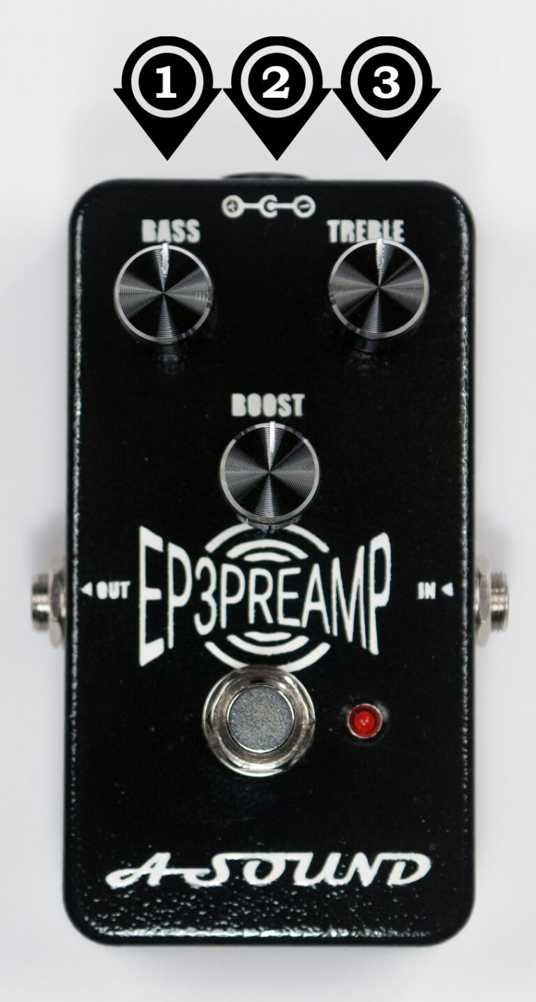 - 2. Boost - Adjusts output level. Clockwise is loud, counterclockwise is quiet. For ultra flat response turn full Counterclockwise all the knobs.