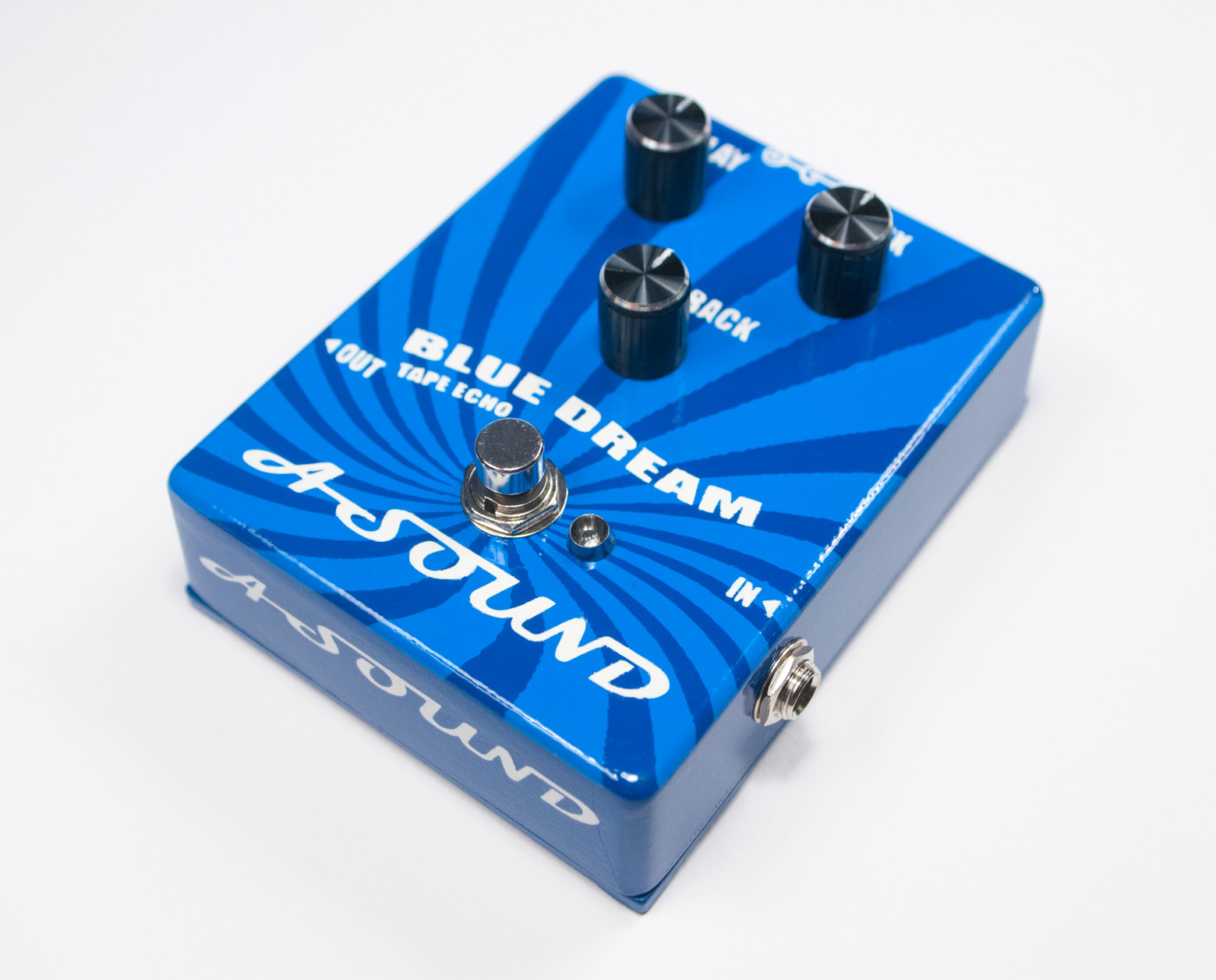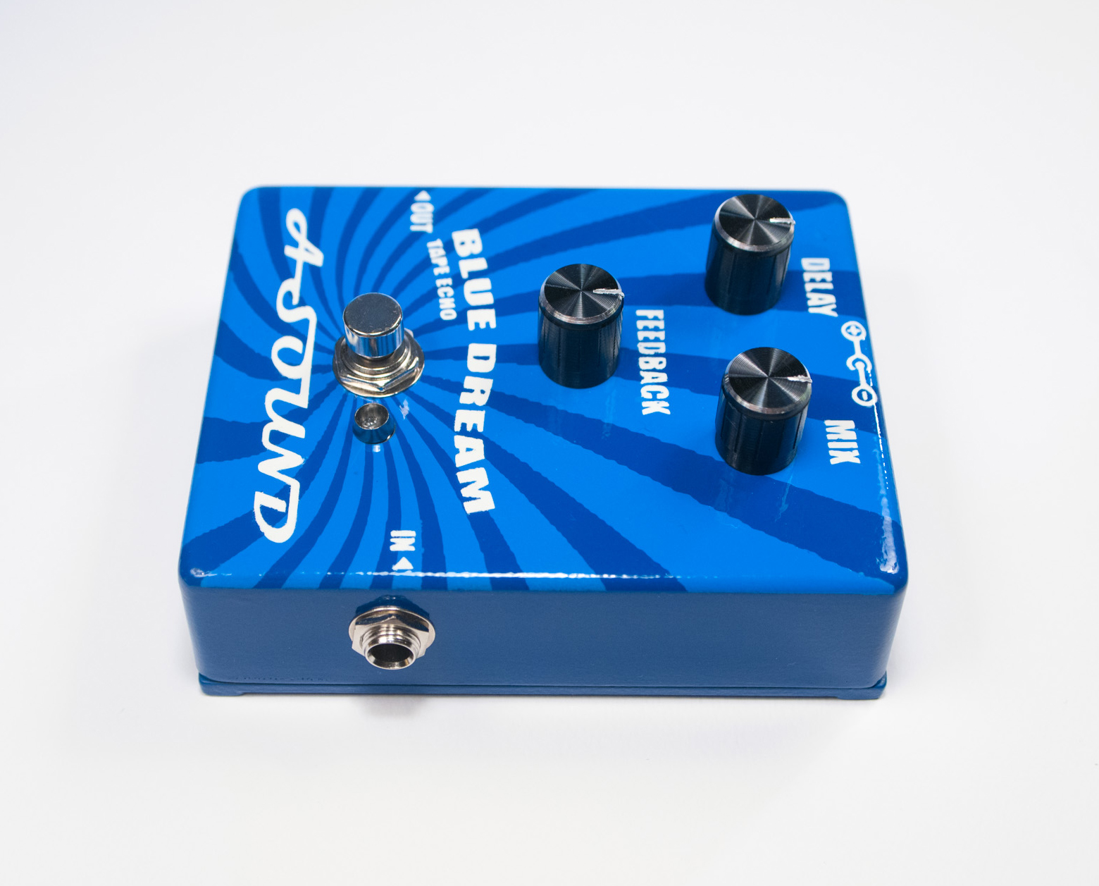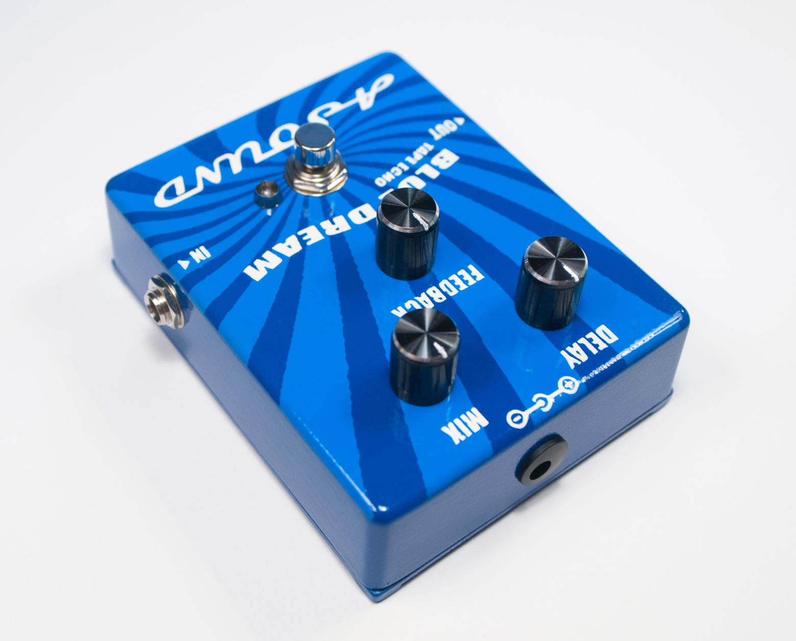 Blue Dream it’s a nice vintage tape echo machine for those with the nostalgia of the tape echo with all its peculiarities. Blue Dream it’s an analog voiced digital delay or a hybrid echo pedal, if you prefer.  The wet signal is digital with 625ms delay time with an all-analog dry signal path and true bypass switching. Most delay pedals alters your tone or tend to be muddy, so special care taken designing transparent – crystal clear stages that doesn’t alter your tone. With the right combination of mix and feedback, you can make the dream came true! Αll you have to do is to set it up and relax in the ambient of the blue dream.